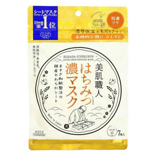 【ゆうパケット配送対象】[KOSE]クリアターン 美肌職人 はちみつ濃マスク 7枚入り(フェイスマスク パック 保湿 ツヤ)(ポスト投函 追跡・