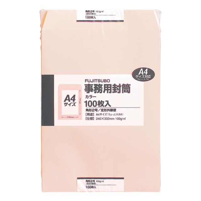 マルアイ 事務用封筒 カラー 角2 ピンク 100g 100枚入 クラフト封筒 100g PK-121P