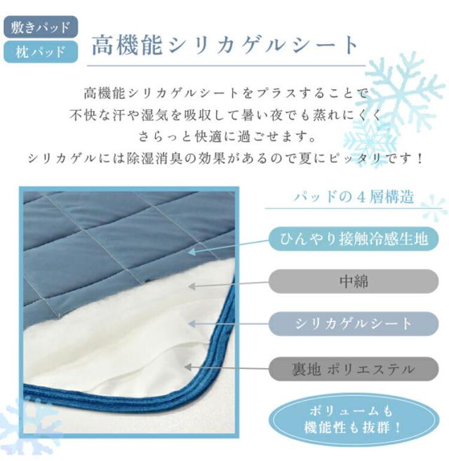 冷感寝具セット シリカゲル シート入り 湿気取り シングル 湿気対策 敷きパッド 枕パッド リバーシブルケット クール 接触冷感 冷感度0.41 タオル 涼しい 夏用 寝具 吸水速乾 除湿 消臭(代引不可)【送料無料】