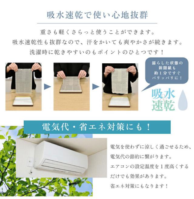 吸水速乾性もあるため、汗や水分を吸いやすく、すぐ乾くのでいつでもさらさらで爽やかです。