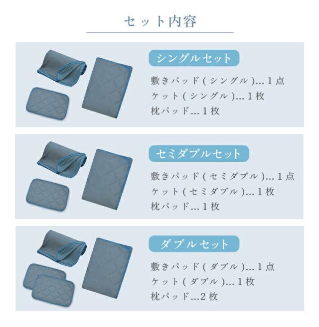3点セット シングル 敷きパッド/ケット/枕カバー | 3点セット セミダブル 敷きパッド/ケット/枕カバー | 3点セット ダブル 敷きパッド/ケット/枕カバー |