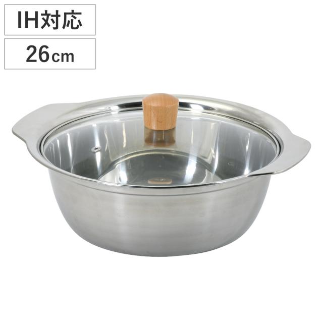 よせ鍋 26cm IH対応 和楽庵 ガラス蓋付き ステンレス製 ( 卓上鍋 一人鍋 ガス火対応 両手鍋 軽量 食洗機対応 IH鍋 両手なべ 季節鍋 軽い 26センチ ラーメン鍋 ステンレス鍋 )