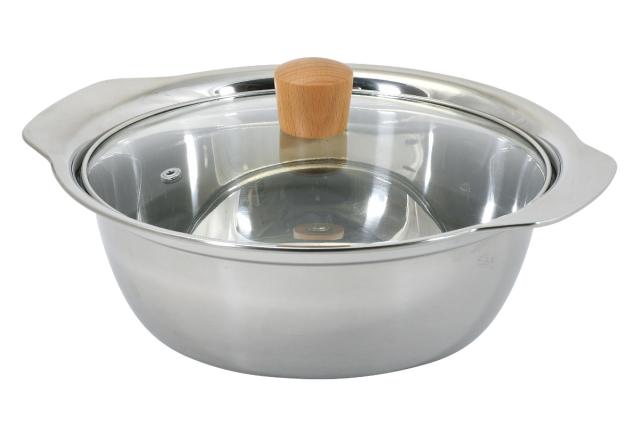 3〜4人分の寄せ鍋やしゃぶしゃぶにぴったりな両手鍋です。丈夫で錆びにくいステンレス製なので、お手入れが簡単。また、土鍋よりも軽く食卓に運びやすいのも嬉しいポイントです。