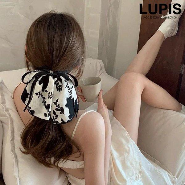 レトロシックな雰囲気のフラワー柄リボンシュシュ。