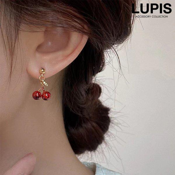 鮮やかな赤い実が耳元を彩るさくらんぼピアス。