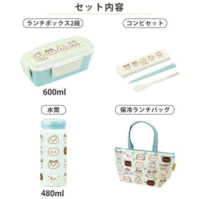 ちいかわランチセット 弁当箱 水筒 ランチバッグ コンビセット ( ランチセット セット 食洗機対応 レンジ対応 二段 抗菌 ドーム型 お弁当 食洗機OK 保冷バッグ 保冷ランチバッグ マグボトル 保温 保冷 カトラリーセット 4点ロック )