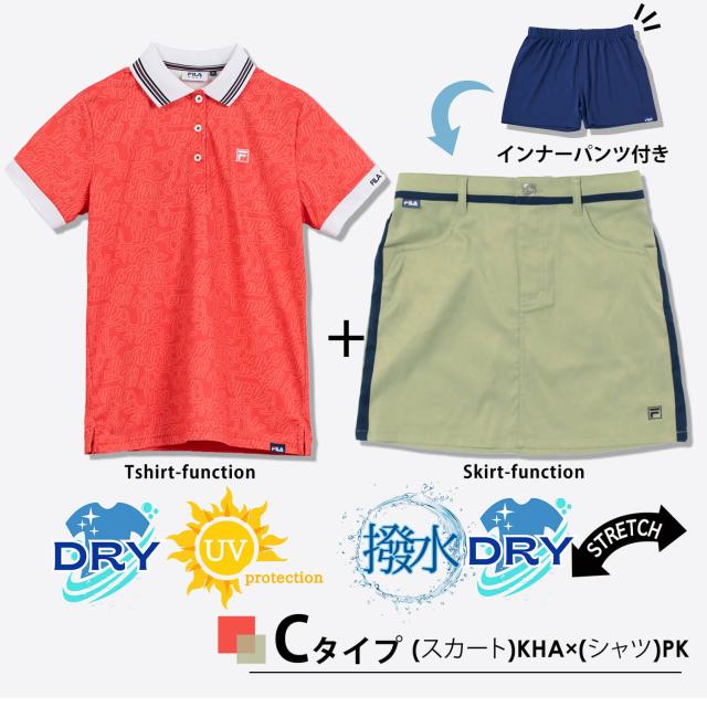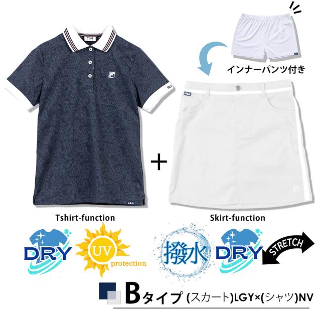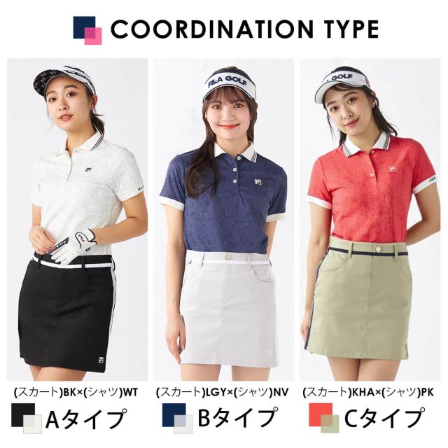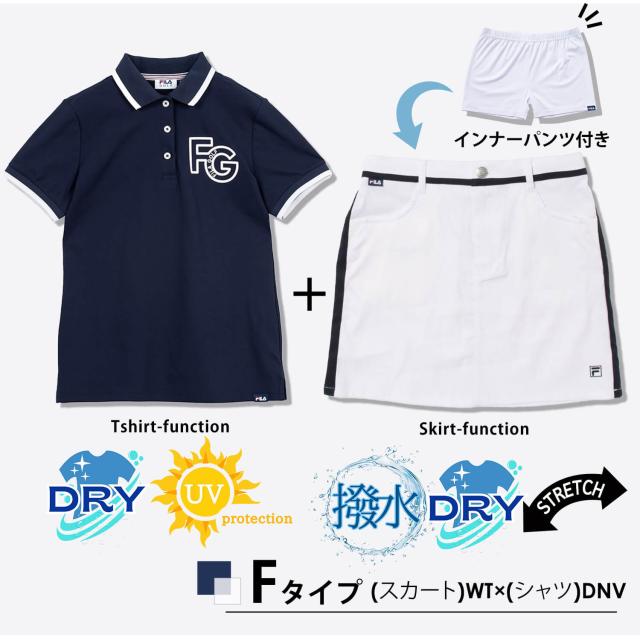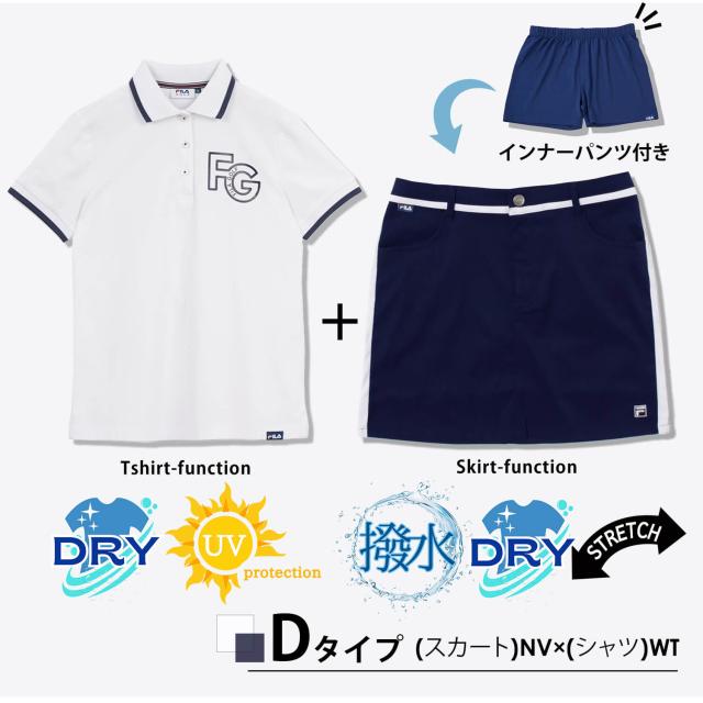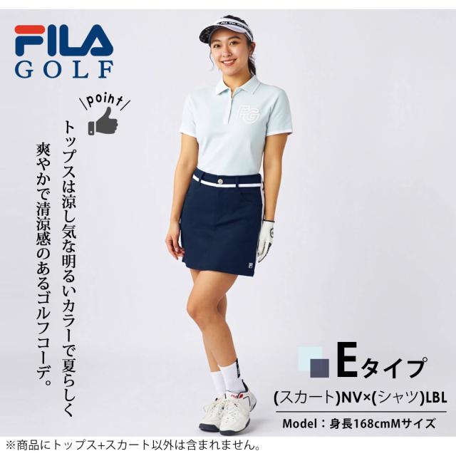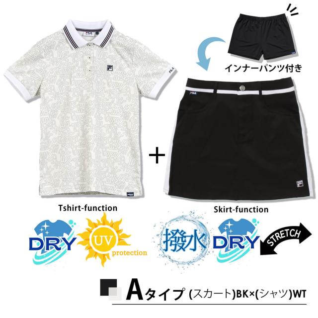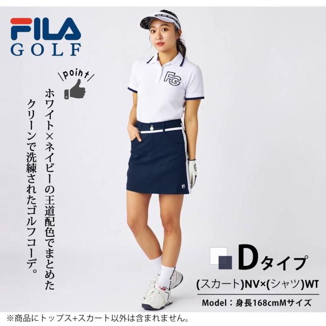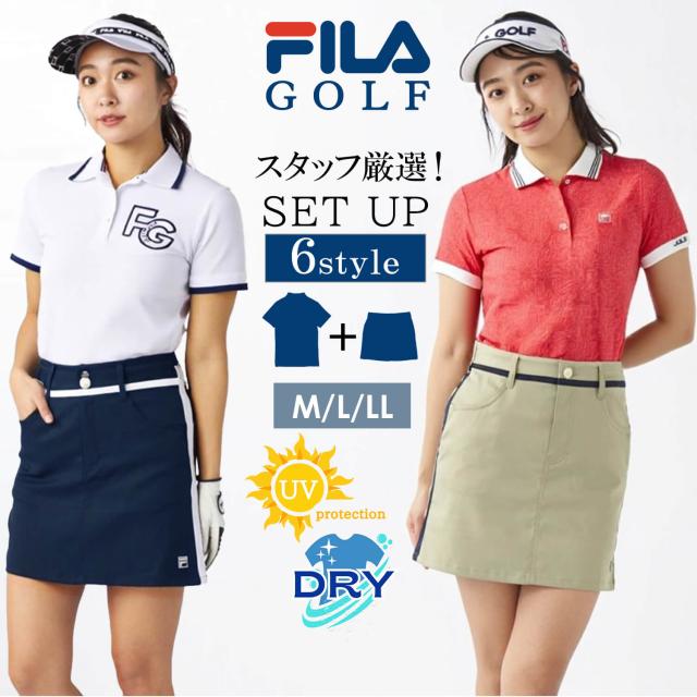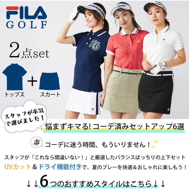 FILA GOLF フィラゴルフ セットアップ レディース トップス スカート 上下セット 吸汗速乾 UV 紫外線対策 ストレッチ 動きやすい 撥水 ゴルフウェア ミニスカート風 ひざ上 美脚効果 台形 スポーツ おしゃれ きれいめ 春 夏 白 黒 2025SS
