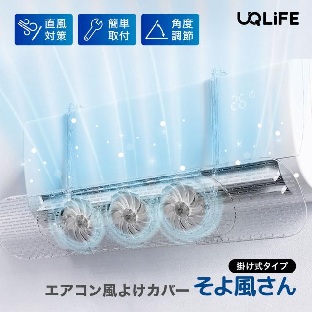 UQLIFE ユニファイン エアコン風よけカバー そよ風さん ファン付き 直撃風防止 結露防止 冷房 暖房 節電 風向き調整 風除け エアコン 風よけ カバー 360°角度調節 55.6-88cm長さ調節 空気循環 軽量 換気 家庭用 エアコンに掛けるだけ 賃貸可能 UQ-ST-CL