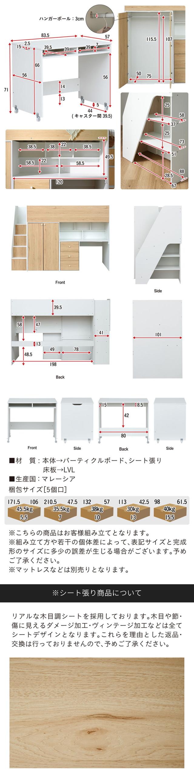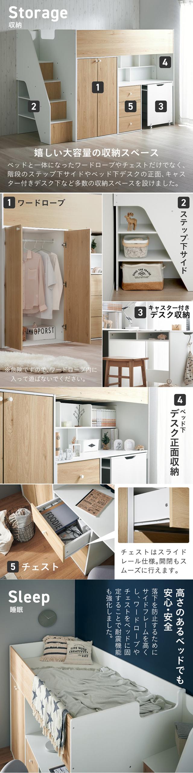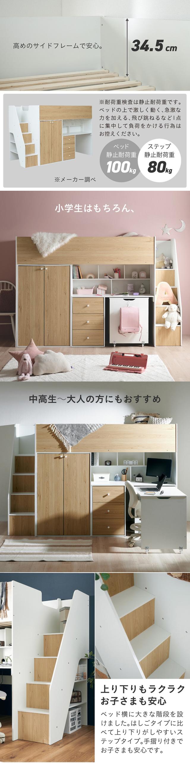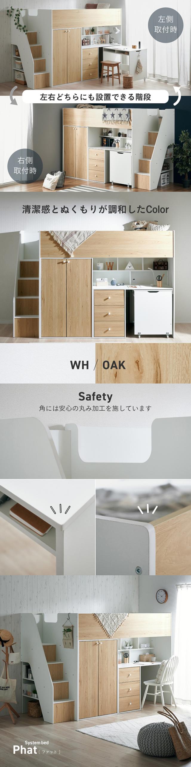 システムベッド ロフトベッド ハイタイプ システムデスク ベッド Phat(ファット) ロフトベット システムベット 木製 すのこ おしゃれ デスクベッド 学習デスク 勉強机 子供部屋 収納棚 チェスト