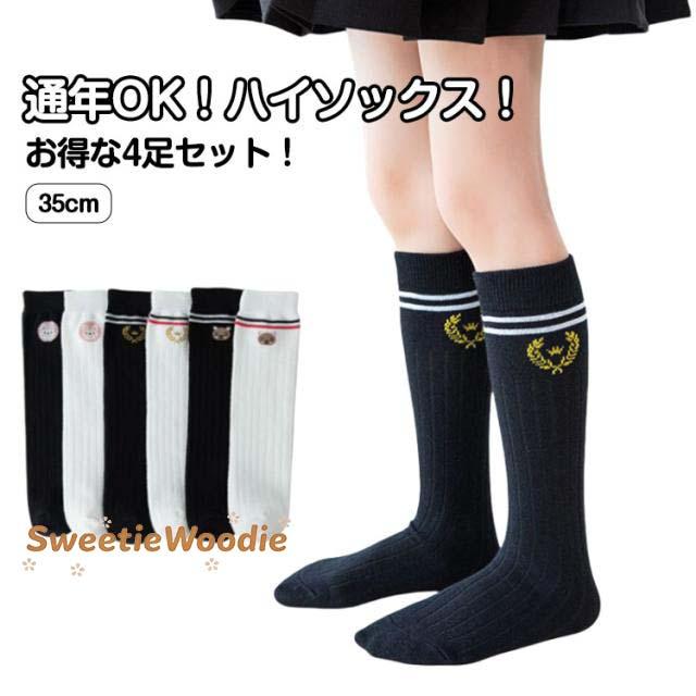 ロングソックス ソックス ボーダーソックス 靴下 ハイソックス 女の子 キッズハイソックス キッズソックス 子供ソックス 子供靴下 通園 おしゃれ 黒 可愛い 靴下 ひざ下 白 ルーズ ダンス 通学 4組セット 入園式 運動会 ハイソックス