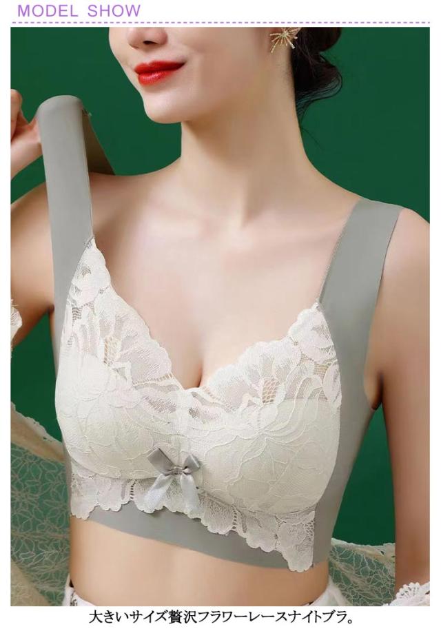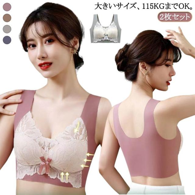 2点セット フラワーレース 大きいサイズ 胸を小さく見せる 送料無料 送料無料 ブラジャー ナイトブラ 昼夜兼用 育乳 ブラ ノンワイヤーブラ 小さく見せるブラジャー 垂れない L 2L 3L 4L 5L