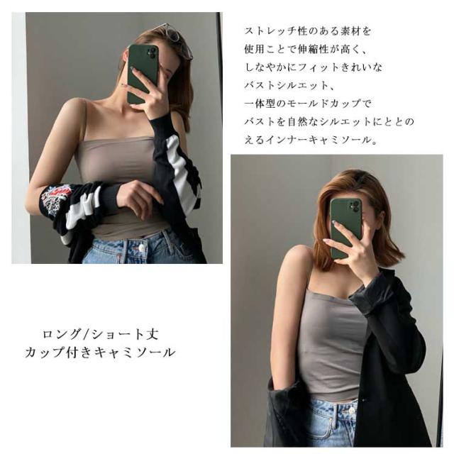 | 着丈2タイプから選べるカップ付きキャミソール。 【ストレッチ生地】ストレッチ性のある素材を使用ことで伸縮性が高く、しなやかにフィットきれいなバストシルエット、一体型のモールドカップでバストを自然なシルエットにととのえるインナーキャミソール。 【固定カップ】カップ部分は縫い付けタイプでしっかりと固定、アンダーゴムがなくしめつけ感を軽減、しかもズレ上がりにくい。 【インナーウェア】インナーシャツとして着用することで、さらさらドライな肌触と、下着が透けない 日中も就寝時も、オールシーズンとしておしゃれなレディースファッションを楽しめます。 【大活躍】ヨガ、ダンス、ランニング、テニス、日常のアクティビティに最適なサポート、細身のショルダーなので洋服にも響かないデザイン。 | |