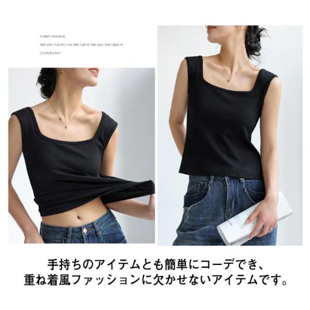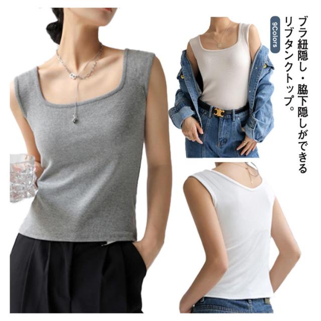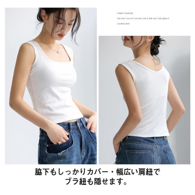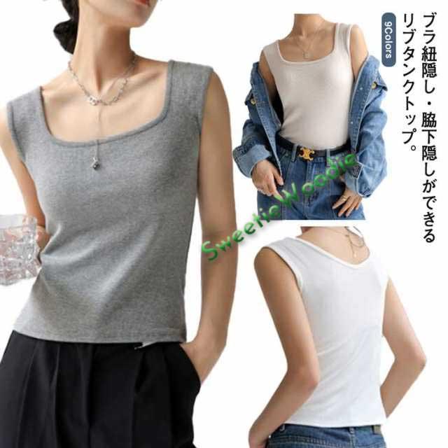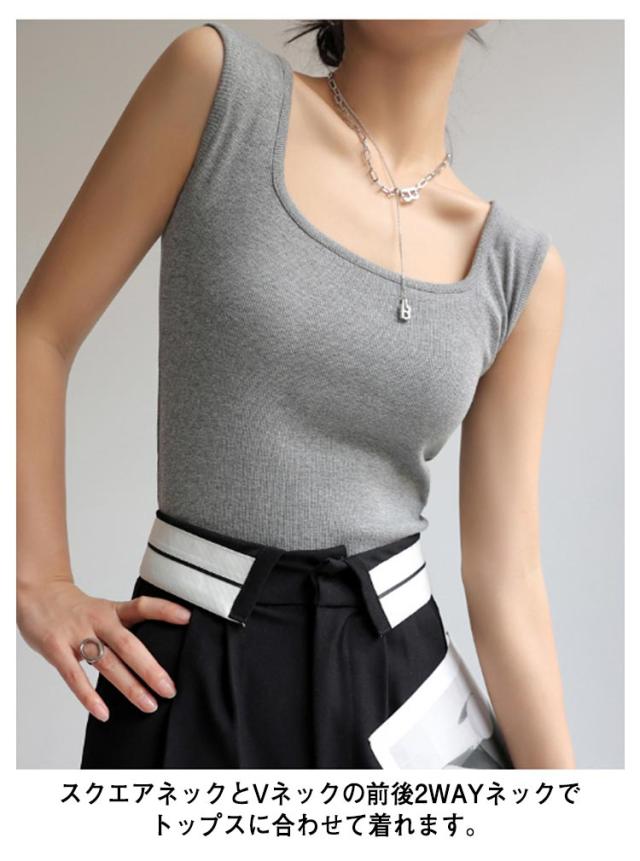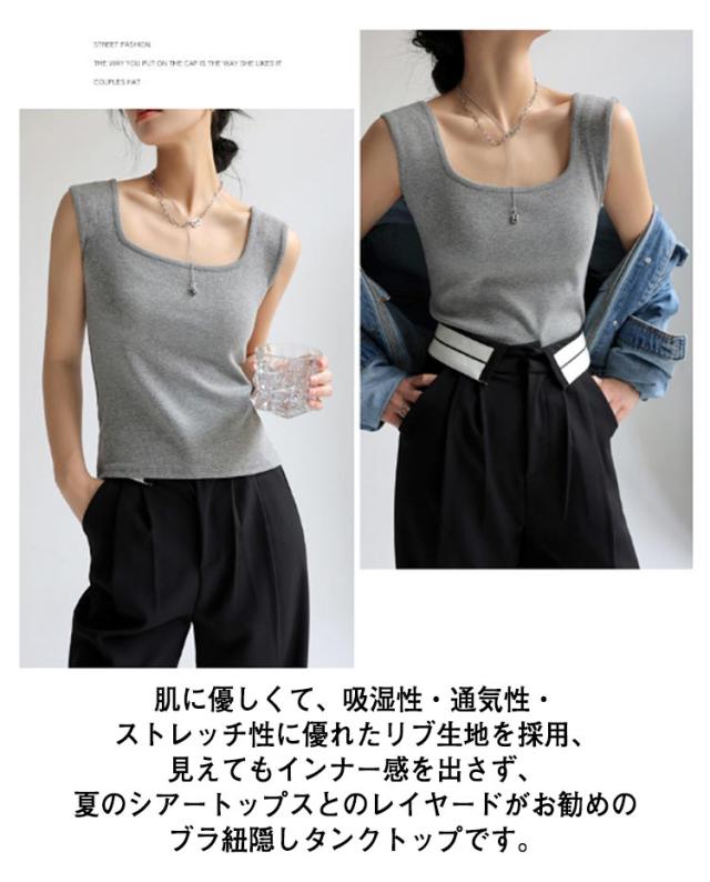 前後2way 脇高 レディース タンクトップ ブラ紐隠しインナー リブ タンク レイヤード チラ見え防止 スクエアネック 肌着 送料無料 脇汗ガード デコルテ見せ キャミ 無地 重ね着 Vネック