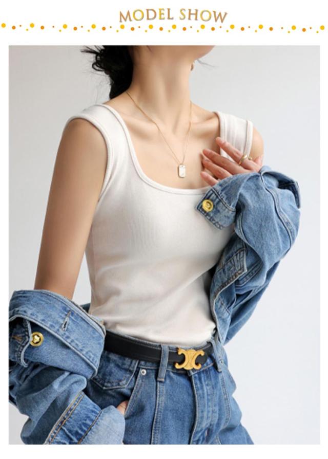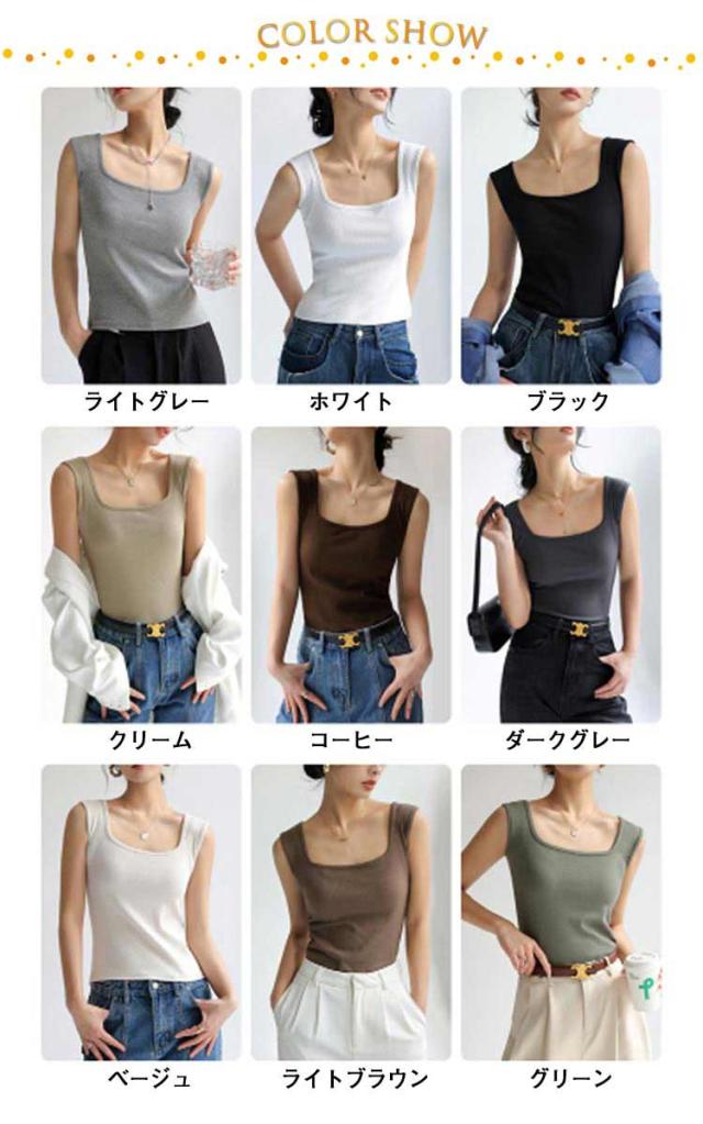 | ブラ紐隠し・脇下隠しができるリブタンクトップ。 脇下もしっかりカバー・幅広い肩紐でブラ紐も隠せます。 スクエアネックとVネックの前後2WAYネックでトップスに合わせて着れます。 肌に優しくて、吸湿性・通気性・ストレッチ性に優れたリブ生地を採用、見えてもインナー感を出さず、夏のシアートップスとのレイヤードがお勧めのブラ紐隠しタンクトップです。 手持ちのアイテムとも簡単にコーデでき、重ね着風ファッションに欠かせないアイテムです。 | |