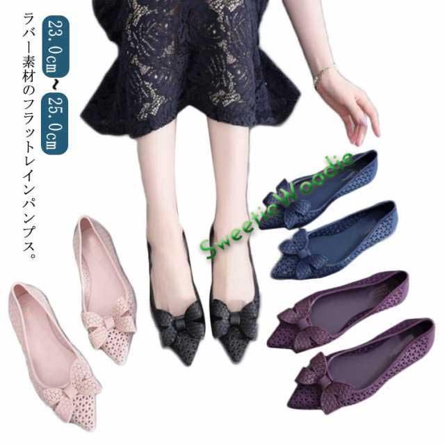 夏サンダル レディース レインパンプス パンプス ぺたんこ フラットシューズ 無地 リボンパンプス メッシュ ラバーシューズ 滑りにくい プール 海 履きやすい ラバーサンダル