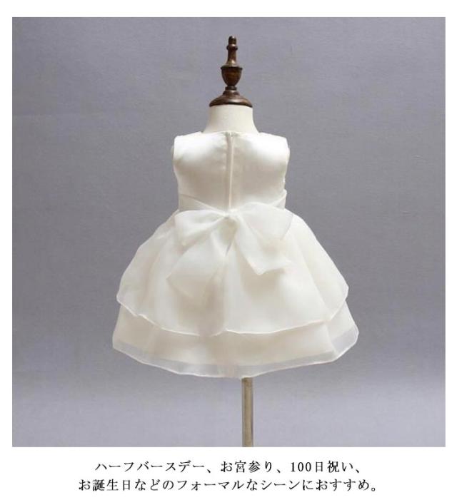 | とても上品で高級感あふれるデザインのフォーマルドレス。 可愛いわが子にはいつも可愛い姿でいてほしい! ハイウエストデザインなので、綺麗なシルエットでお召しいただけます ノースリーブのデザインのため羽織をプラスするとオールシーズンお使いいただける一着です。 ハーフバースデー、お宮参り、100日祝い、お誕生日などのフォーマルなシーンにおすすめ。 | |