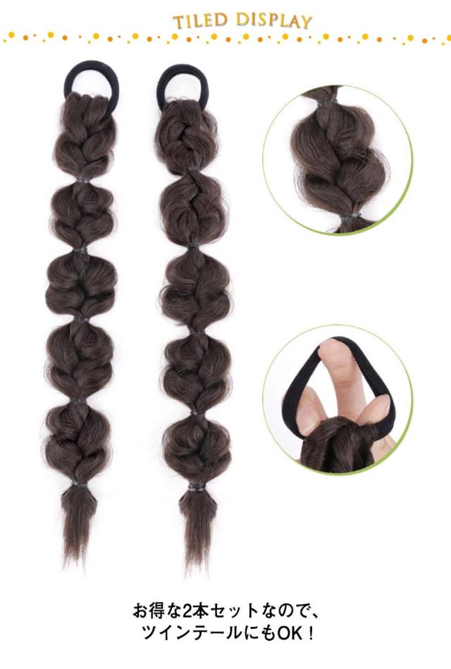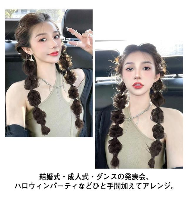 | ふわふわボリューム感が可愛い三つ編みエクステ。 お団子に輪ゴムを結ぶだけで、簡単イメチェン!髪が短い方でもポニーテールを可愛く見せられる、新感覚のヘアスタイルに。 お得な2本セットなので、ツインテールにもOK! 結婚式・成人式・ダンスの発表会、ハロウィンパーティなどひと手間加えてアレンジ。 ファッションとして楽しみたい方、ポニーテールやツインテールにしたい方、ヘアスタイルを変えたい方、10代、20代、30代など、幅広い年齢の女性に愛用されています。 | |