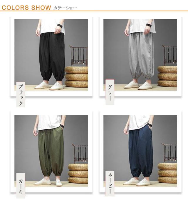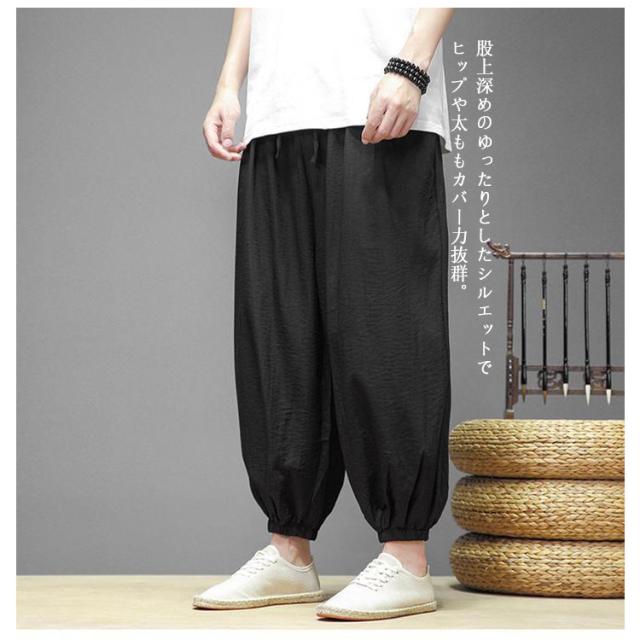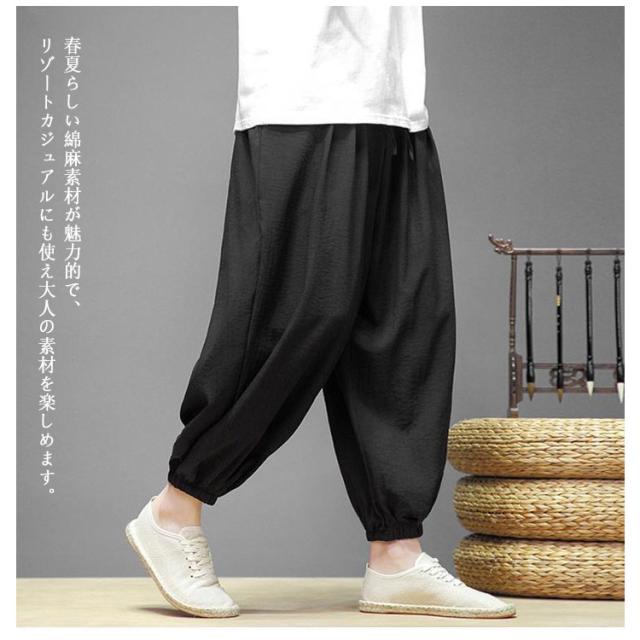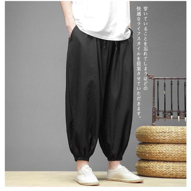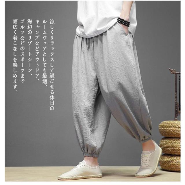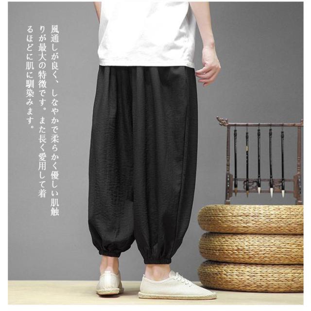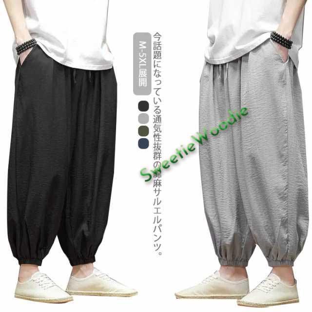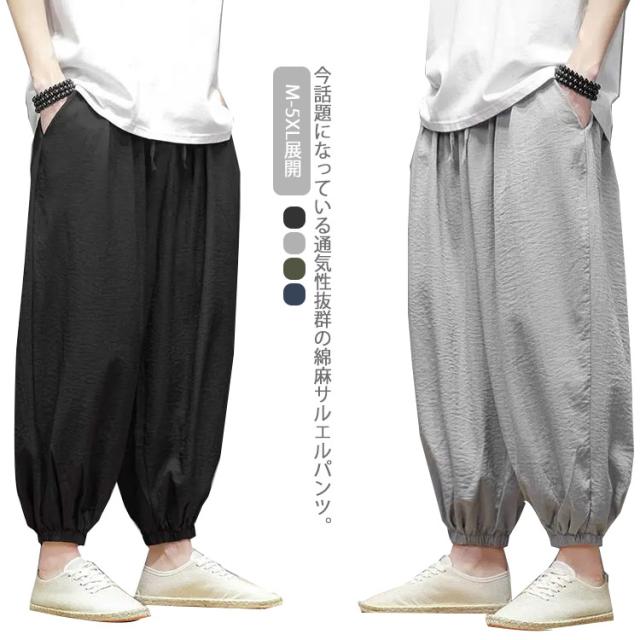 送料無料 サルエルパンツ 夏用 メンズ ゆったり ズボン アラジンパンツ ゆったり 冷感 麻 リラックスパンツ イージーパンツ パンツ バルーンパンツ ワイド リネン 大きい 薄手 無地 ウエストゴム リラックスパンツ 部屋着 無地 さらっと涼しく軽い履き心地♪ワイドパンツ