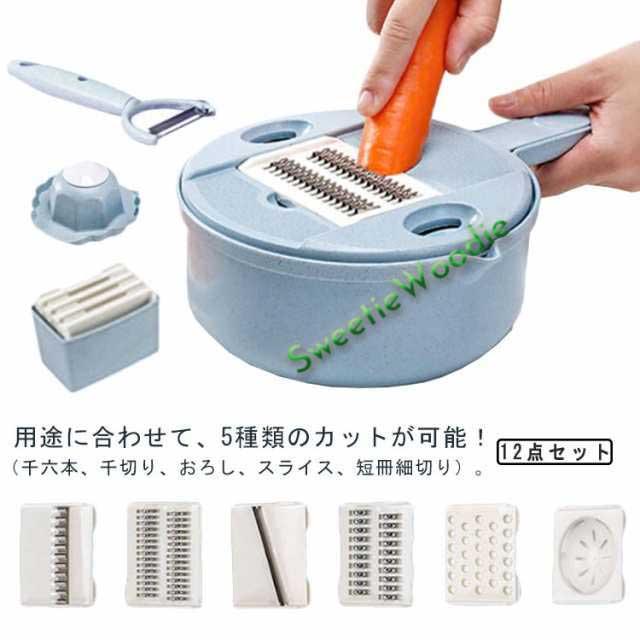 スライス 野菜スライサー 水切りボウル スライサー 千切り 野菜調理セット 野菜カッター 水切りラック 12点セット 野菜切り器 みじん切り マルチ 多機能 細切り 水切り 薄切り 果物 調理器セット キャベツスライサー 食器 カッター インテリア