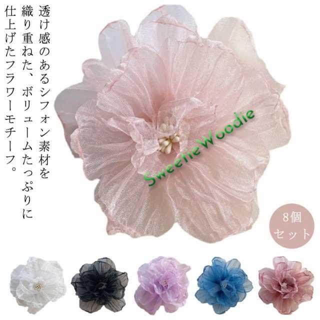 9cm 花 大きい 大きめ フラワーチャーム シフォン アクセサリー フラワーモチーフ オーガンジー バラ パーツ ハンドメイド コサージュ ヘアアクセサリー 手芸 手作り 全6色 髪飾り 8個入り