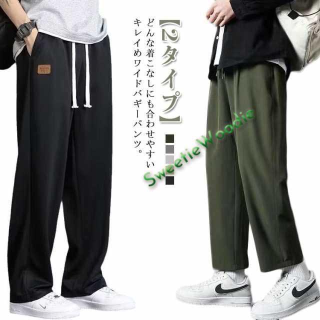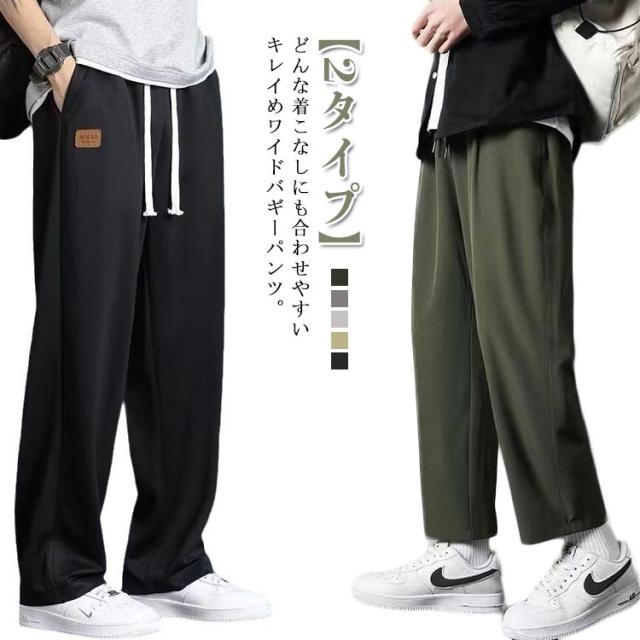 冷感素材 2タイプ キレイめ 2枚セット メンズ 夏服 ズボン ゆったり ワイド ロングパンツ 冷感素材 秋 夏 ワイドパンツ ロング丈 イージーパンツ 薄手 冷感 カジュアル バギーパンツ 大きサイズ 通気 M?5XL