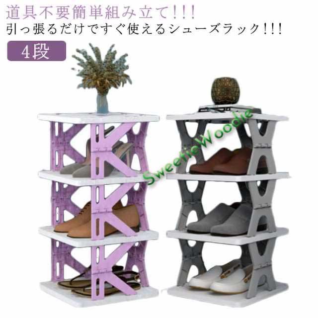 スペース スリム おしゃれ 玄関収納 ラック 棚 折り畳み おしゃれ 折りたたみ シューズラック 靴箱 4段 玄関家具 靴棚 収納ボックス 伸縮 省スペース マルチラック コンパクト 省 オープンシェルフ 下駄箱