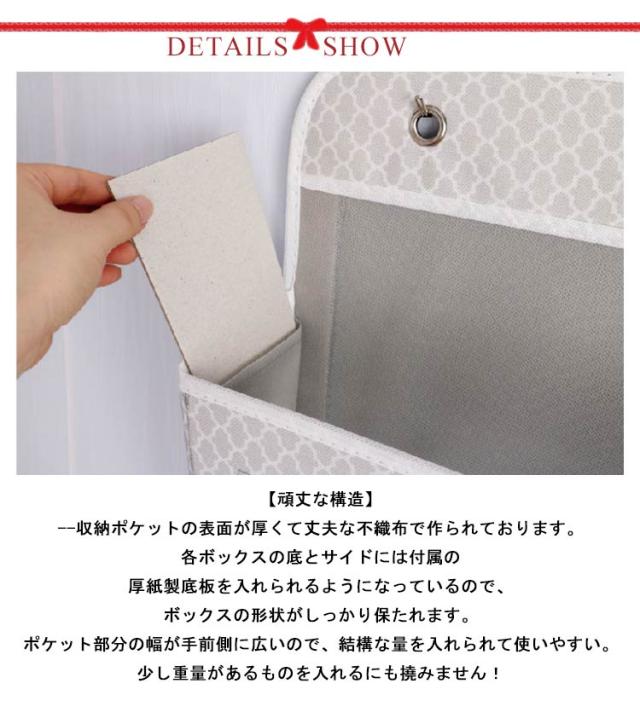 | 【5段の大容量と透明窓付きの設計】-- 五段のウォールポケットで、普通の製品より一つのポケットが多く、化粧品、ぬいぐるみ、タオルなど多くの雑貨を収納できます。透明窓付きの設計なので、収納されているものを見えやすく、財布やカバン、スカーフ、ヘアアクセサリー、おもちゃ、雑誌 などの出し入れも便利です。 【頑丈な構造】--収納ポケットの表面が厚くて丈夫な不織布で作られております。各ボックスの底とサイドには付属の厚紙製底板を入れられるようになっているので、ボックスの形状がしっかり保たれます。ポケット部分の幅が手前側に広いので、結構な量を入れられて使いやすい。少し重量があるものを入れるにも撓みません! 【吊り下げ収納 省スペース】-- ドア、壁、クローゼットに掛けて使える吊り下げ収納ポケットです。ドア掛け収納式ポケットは簡単に吊り下げられます。片づけの苦手な方でも、入れるだけで、しかも見やすいので、簡単に片づけ上手になれます。 【小物入れ 折り畳み可能】-- 吊り下げ式収納ポケットなので、部屋の空間を活用できるバッグや小物の収納ラックです。使わない時はコンパクトに折り畳めるので、スペースも取らない。お好み次第で使い方自由。手洗いが可能なので汚れても手軽にお手入れができます。洗濯機&脱水&乾燥機のご使用はお控えください。ご了承ください。 【優れたな素材&サービス】-- この壁掛け ウォールポケットはエコで丈夫な軽い不織布を採用し、荷重性が良くて、水濡れにも強いです。防潮、防虫、防カビ、防湿の効果があります。 | |