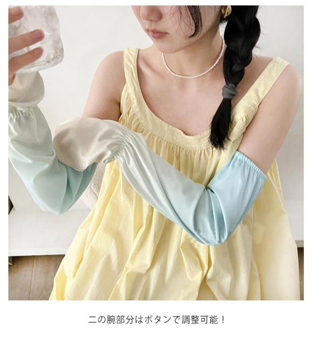| 指掛けタイプアームカバー。二の腕から指先までしっかりカバー。 接触冷感で、水や汗で濡れると気化熱の作用により冷却効果!軽くて涼しく通気性のある肌に優しい柔らかな生地、心地よい肌触り! UPF50+!日差しの強い時期の紫外線から肌を守ることが期待できる日焼け対策として! 紫外線カッド率99%以上で、着け心地が夏に快適! 通気性抜群!汗がいつでも残らず素速く乾く素材なので、快適に身に着けられる。 吸水速乾性!熱の解散が早いので、ひんやり感が早く回復! ぐーんとよく伸びる!のびのびストレッチ! 二の腕部分はボタンで調整可能! アウトドアやスポーツにも最適! | |