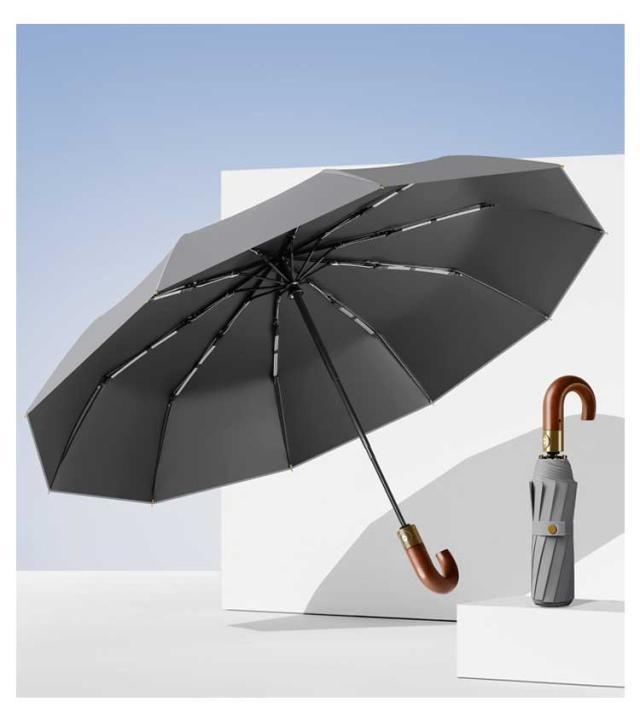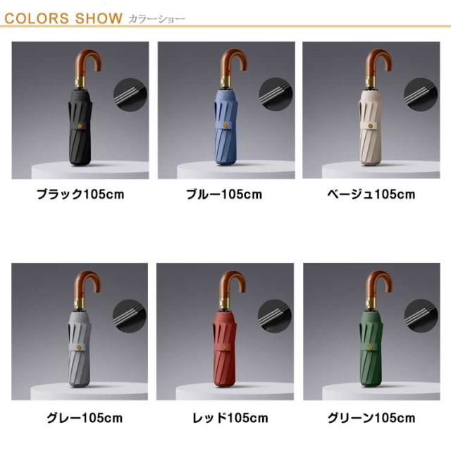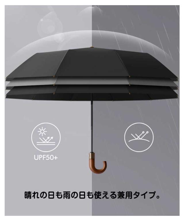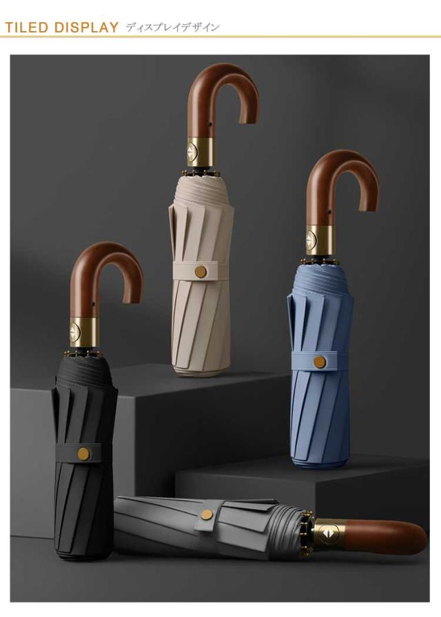 | ・非常に強い10本骨 折り畳み傘です! ・片手で開くことのできる自動開閉タイプ。 ・長傘にも負けないワイドな大きさで荷物もしっかりとカバーできます。 ・晴れの日も雨の日も使える兼用タイプ。 ・持ちやすいJ型・木製手元。 | |