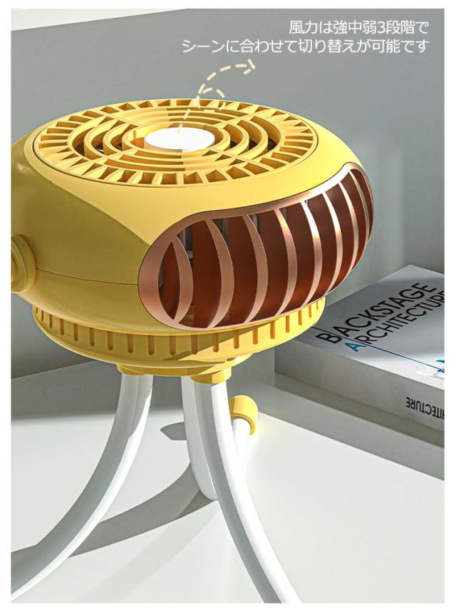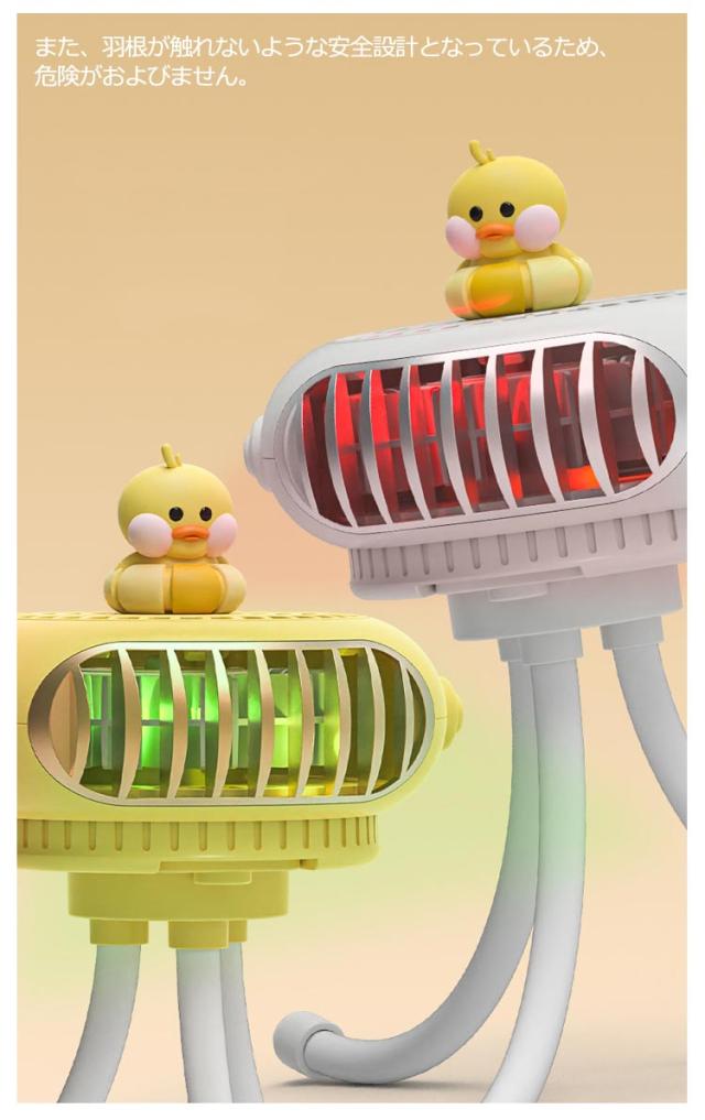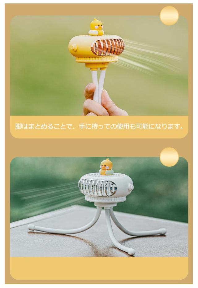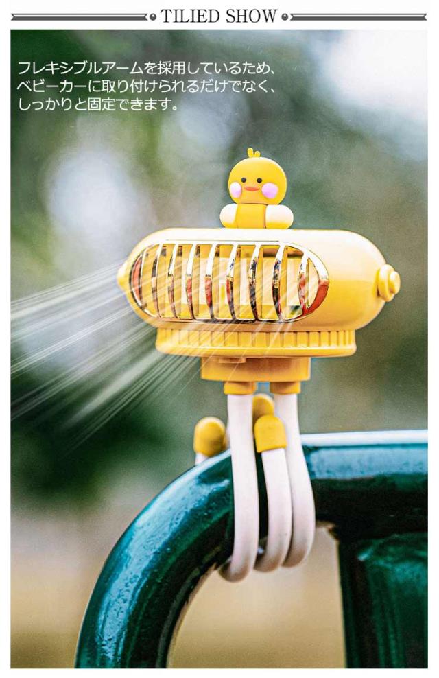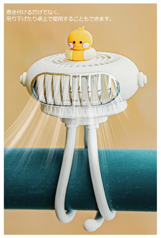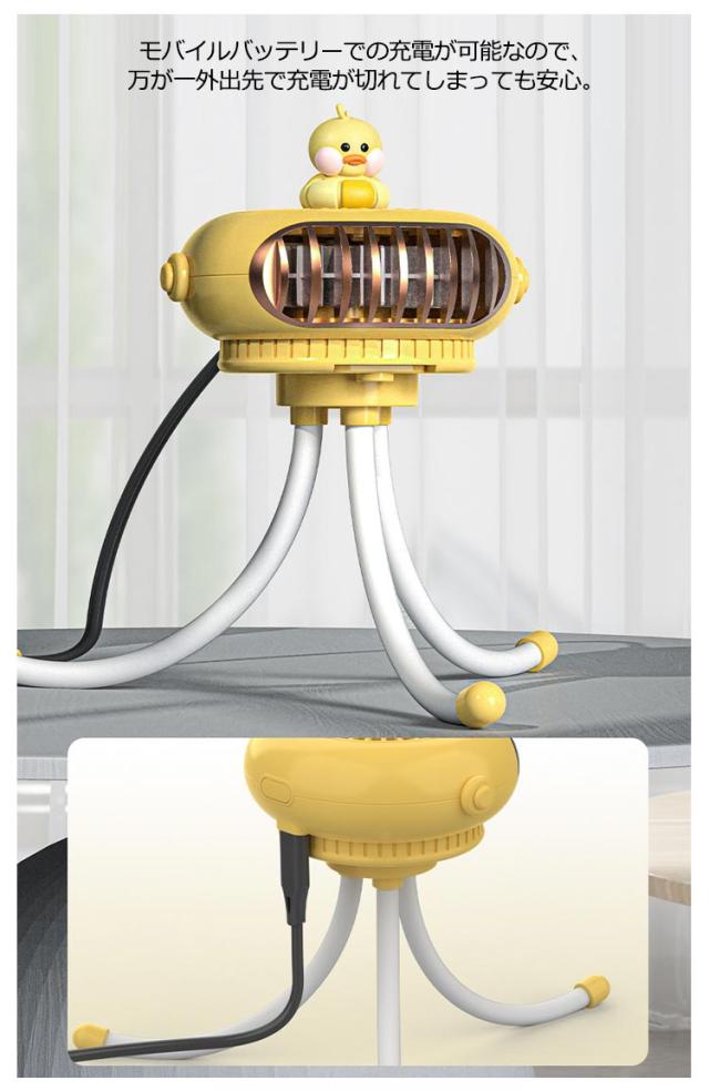 | ・クラゲのような可愛らしいデザインが特徴なミニ扇風機 ・フレキシブルアームを採用しているため、ベビーカーに取り付けられるだけでなく、しっかりと固定できます。 ・巻き付けるだけでなく、吊り下げたり卓上で使用することもできます。 ・脚はまとめることで、手に持っての使用も可能になります。 ・また、羽根が触れないような安全設計となっているため、危険がおよびません。 ・風力は強中弱3段階でシーンに合わせて切り替えが可能です。 ・ヘッド部分は360度に動くので、状況に合わせて調節してみてください。 ・モバイルバッテリーでの充電が可能なので、万が一外出先で充電が切れてしまっても安心。 | |
