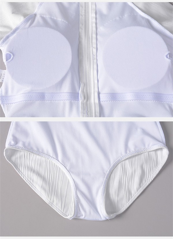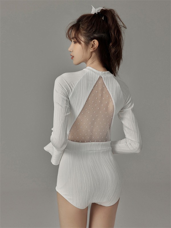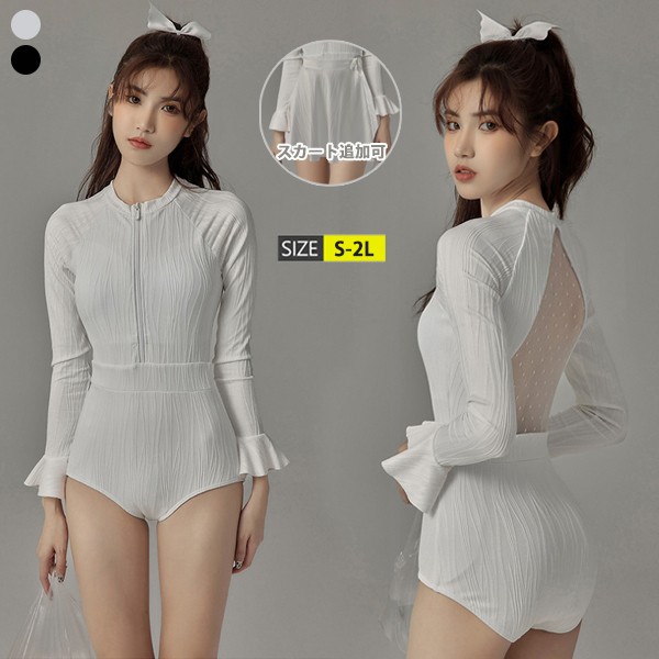 水着 レディース ワンピース 袖あり 長袖 体型カバー オールインワン おしゃれ かわいい ホワイト 白 黒 S-2L バックシャン 20代 30代 40代 大人 オトナ女子 温泉 海 プール リゾート 胸パッド付き セクシー 小胸 ハイウエスト 韓国 ノンワイヤー 中学生 高校生