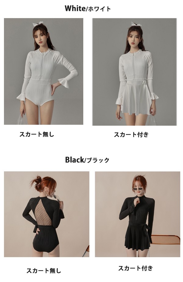 水着 レディース ワンピース 袖あり 長袖 体型カバー オールインワン おしゃれ かわいい ホワイト 白 黒 ブラック バックシャン 20代 30代 40代 大人 オトナ女子 温泉 海 プール リゾート 胸パッド付き セクシー 小胸 ハイウエスト 韓国 ノンワイヤー 中学生 高校生 k2040d7d7ld