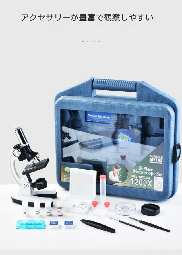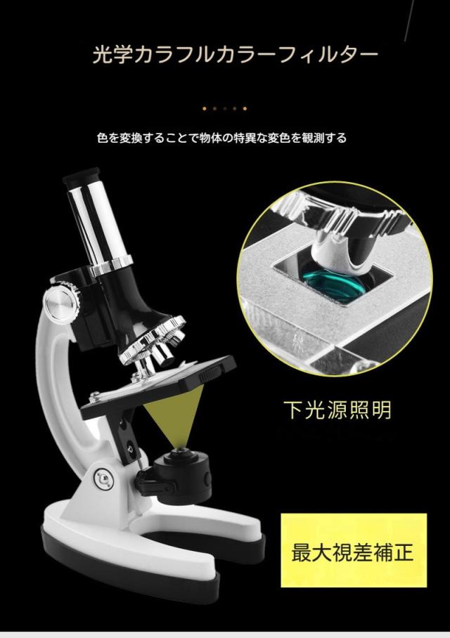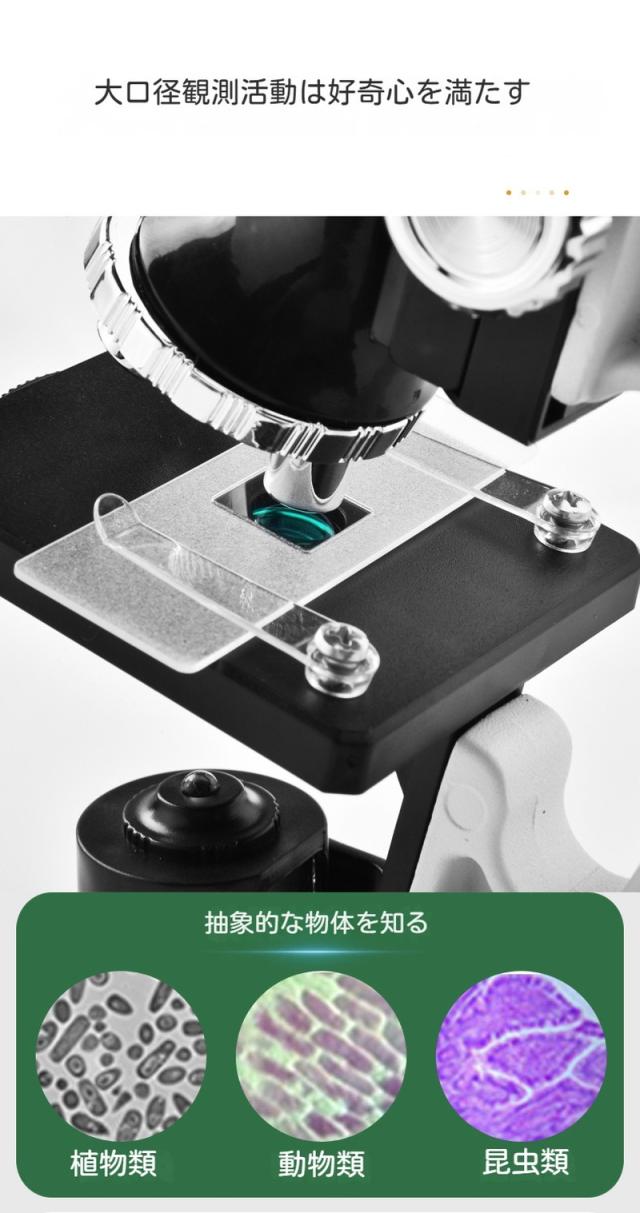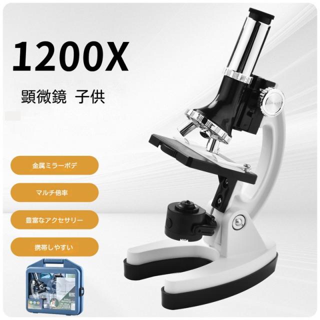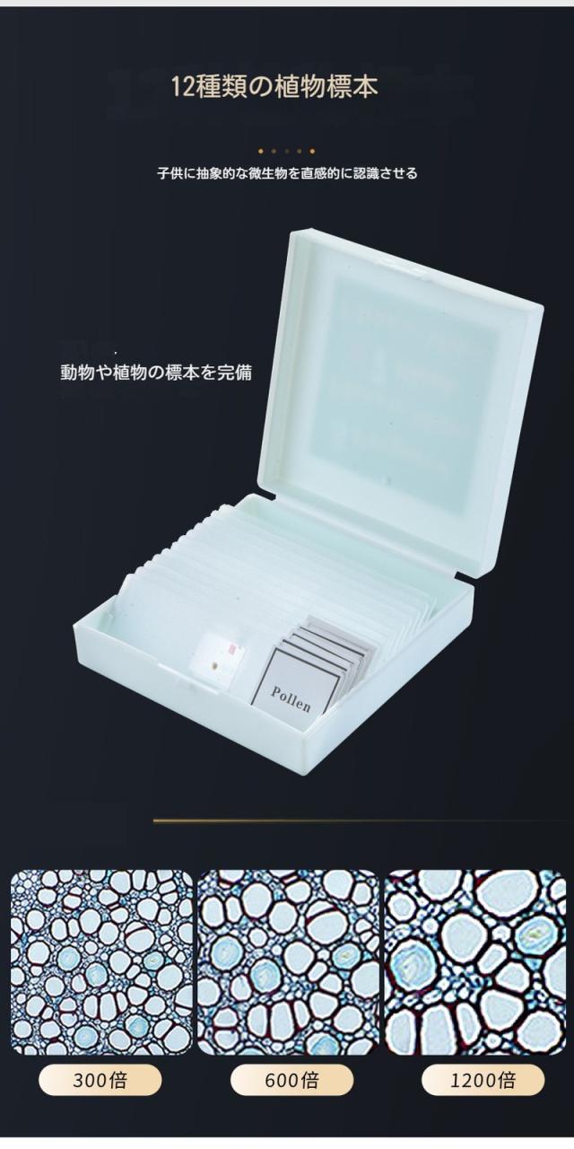 超鮮明な反射式&子供 顕微鏡 小学生 中学生 子供用 初心者 撮影 高倍率 300-1200X拡大 ledライト搭載 広角目鏡 実験 学習用 生物標本 自由研究 高倍率 レゼント 夏休み生物学教育実験 知育 誕生日