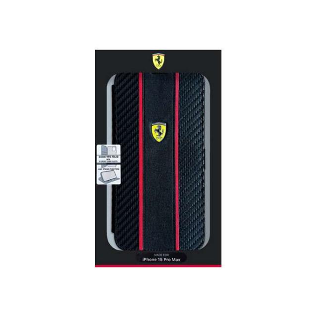 フェラーリ iPhone15 Pro Max用 PUカーボン 手帳型ケース。