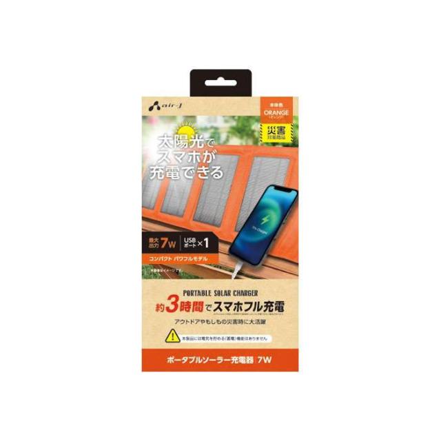 ポータブルソーラー充電器 最大出力7W エアージェイ AJ-NSOLAR7W OR