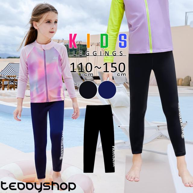 夏新作 キッズ レギンス ボトムス 水着 女の子 スパッツ タイツ 水陸両用 110 120 130 140 150 紫外線対策 日焼け対策 ラッシュガードパンツ ロゴ ワンポイント ウエストゴム ひも調節 裏地付き 無地 マリンスポーツ 運動