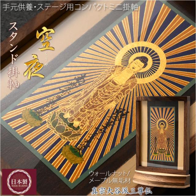 本尊掛軸【手元供養用・木製アクリル・スタンド掛軸:空夜(くうや)天然木ウォールナット・メープル材 真宗大谷派(お東)三尊仏】仏壇 仏具 手元供養 置き軸 モダン掛軸 仏さま 御本尊 脇侍 守り本尊 送料無料