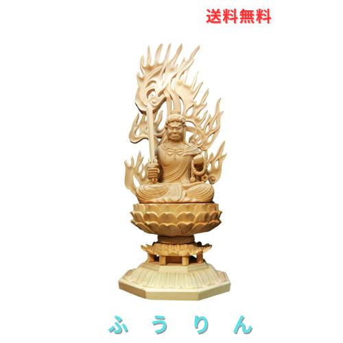仏像 木彫り 不動明王 仏壇仏像 置物 桧木製 守り本尊 祈る 厄除け 八角台座 火炎光背 (28CM 桧木)