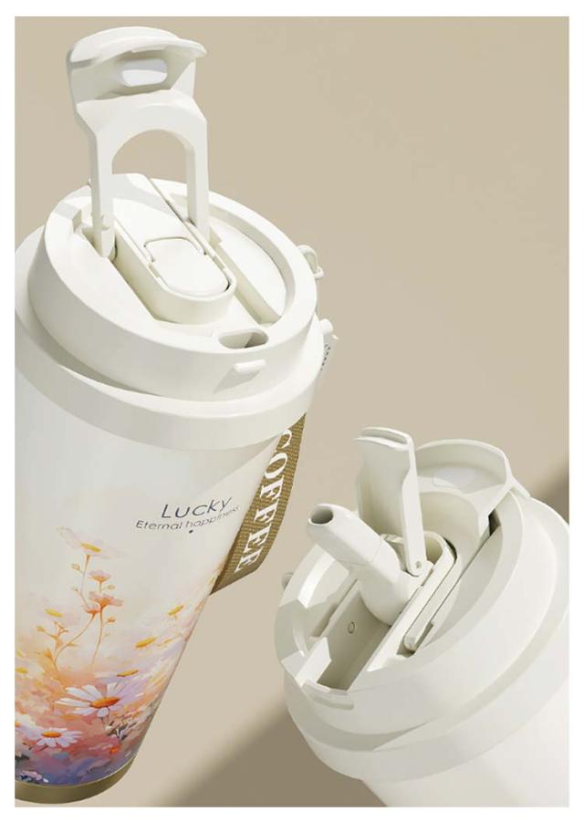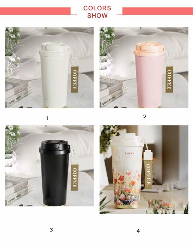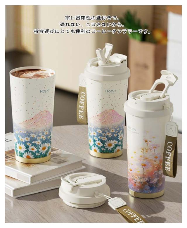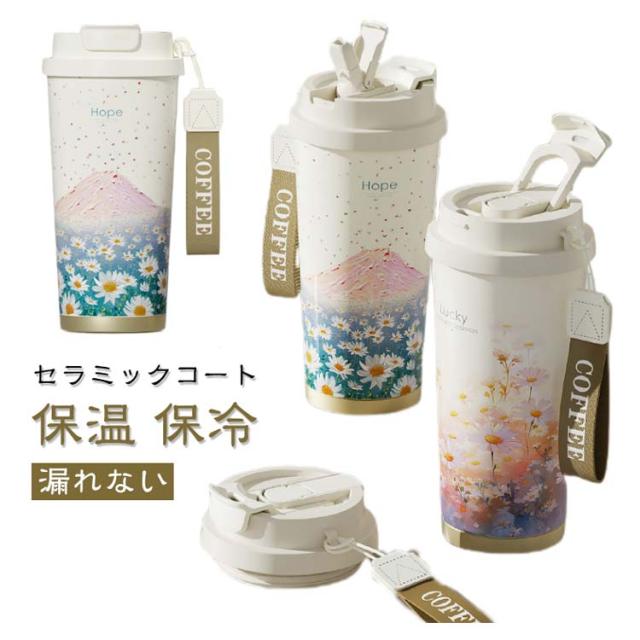 コーヒータンブラー セラミックコート ストロー付き 直飲み タンブラー コーヒーボトル セラミック マグボトル 水筒 真空断熱 保温 保冷 マグカップ 蓋付き 広口 コーヒーカップ 漏れない ドリンクボトル 車 オフィス 茶こし付き 炭酸 お茶