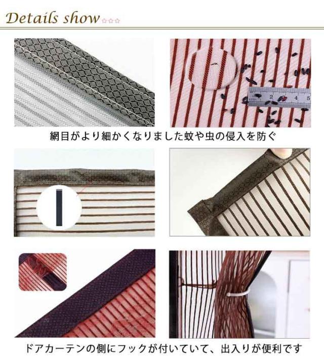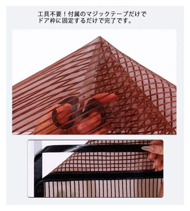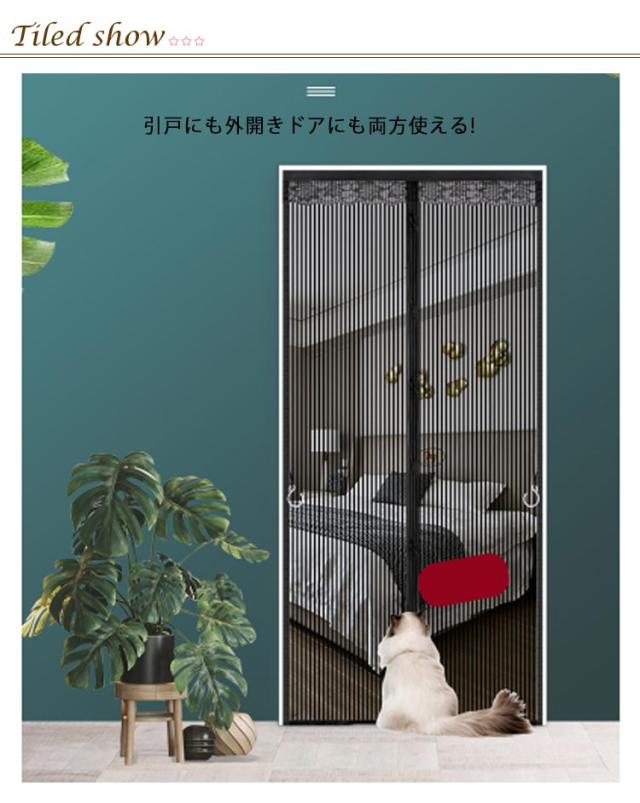 | マグネットで閉まる 防蚊網戸カーテン 貼るだけ 引戸にも外開きドアにも両方使える! ドアカーテンの側にフックが付いていて、出入りが便利です マグネットストリップをアップグレードし、密封性を向上させました 網目がより細かくなりました蚊や虫の侵入を防ぐ 工具不要!付属のマジックテープだけでドア枠に固定するだけで完了です。 | |