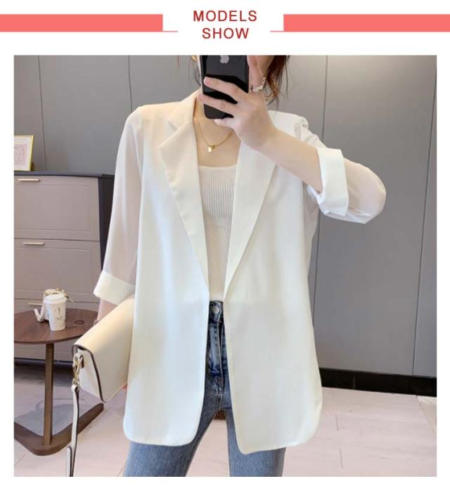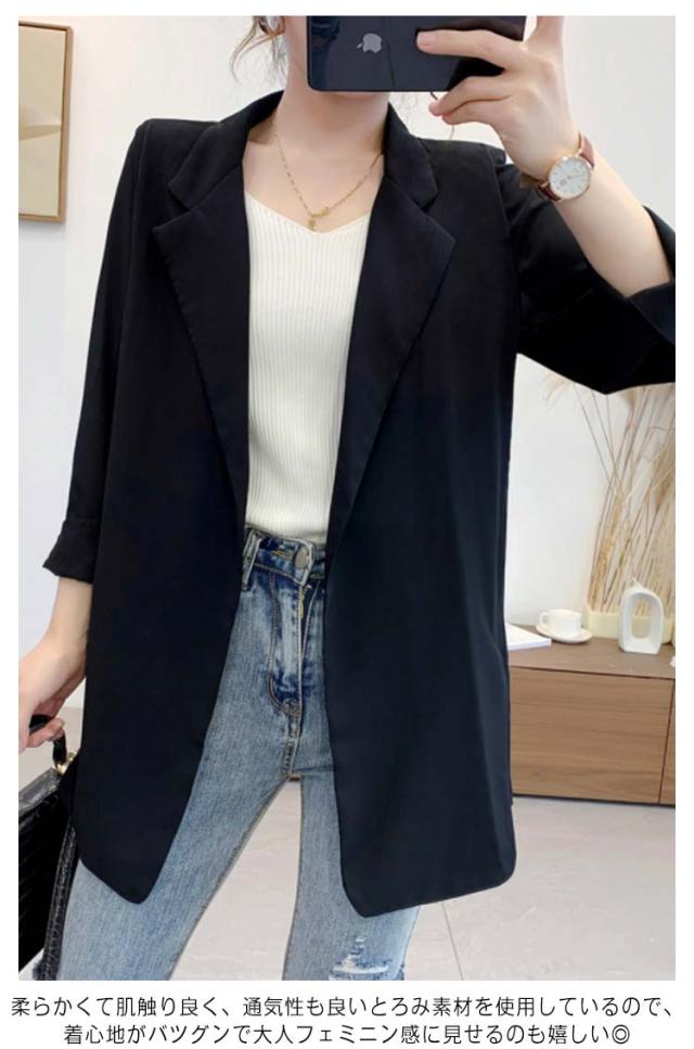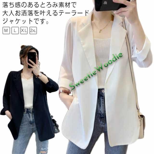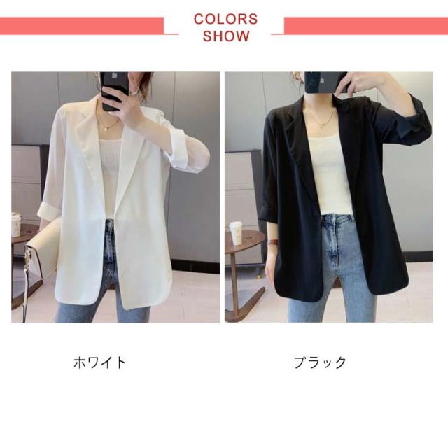 サマージャケット レディース 七分袖 シフォン テーラードジャケット 夏 薄手 アウター 40代 50代 七分袖 夏服 春服 ビジネス オフィスカジュアル 黒 白 通勤 ロング 大きいサイズ カジュアル