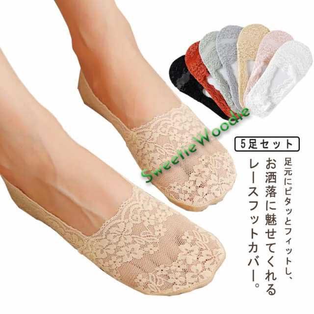 フットカバー 靴下 レディース 脱げない ソックス レース 靴下 パンプス 滑り止め 脱げにくい くつした 歩きやすい シースルー カバーソックス インナーソックス 女子 大人 かわいい 滑り止め付き 無地 レース まとめ買い 5足セット 送料無料 お得セット