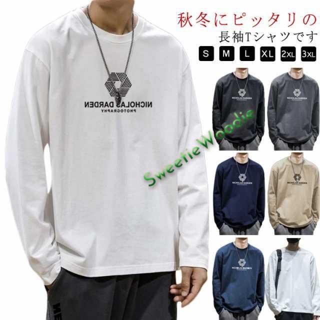 Tシャツ メンズ ロングTシャツ ロンT 長袖 メンズ 長袖tシャツ プリント 文字 ロンT ロングTシャツ ブランド 秋服 Tシャツ Uネック クルーネック カットソー トップス スリム アメカジ 秋 冬 春 送料無料