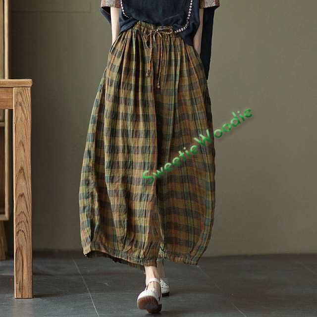 サルエルパンツ 大人 サルエル パンツ アラジンパンツ バルーンパンツ チェック柄 ワイドパンツ レディース バルーンパンツ ロング 10分丈 きれいめ かわいい ウエストゴム 春夏 ボトムス 綿麻 大きいサイズ 送料無料