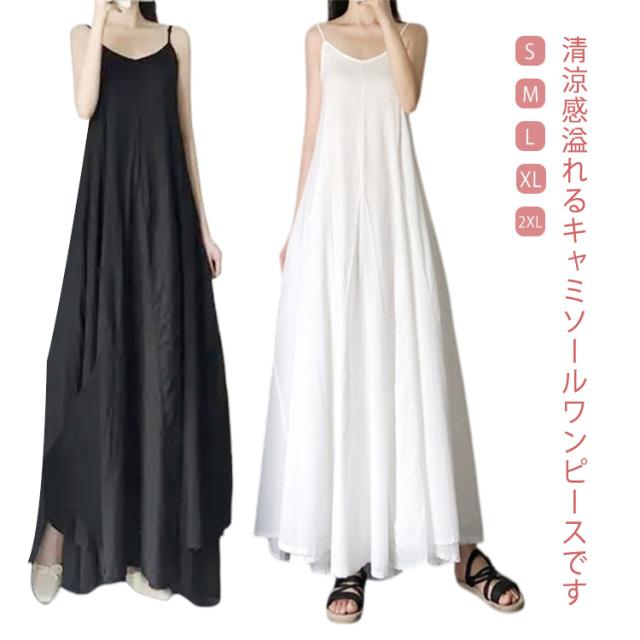 夏 ワンピース キャミソールワンピース ノースリーブワンピース キャミワンピース ロングワンピース マキシワンピース マキシ ロング ノースリーブ Aラインワンピース フレアワンピース 大きいサイズ ビッグシルエット 体型カバー リゾート 海 春 夏