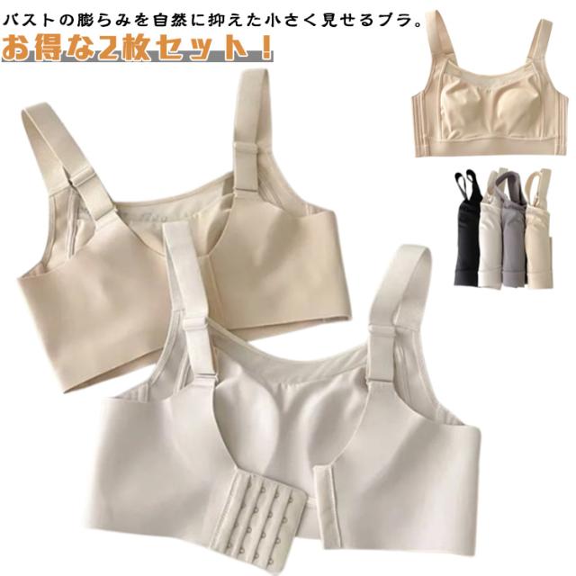2枚セット 胸を小さく見せるブラ 小さく見せるブラ ノンワイヤーブラ 脇高ブラ 大きな胸を小さく見せるブラ フルカップ 揺れ軽減 着痩せブラ 通気性 シームレスブラ 脇高設計 安定感 可愛い さらしブラ 和装 大きいサイズ 柔らか 昼夜兼用 送料無料