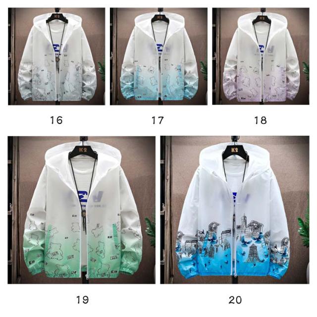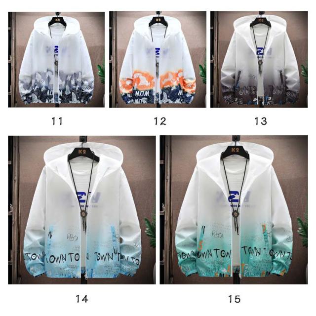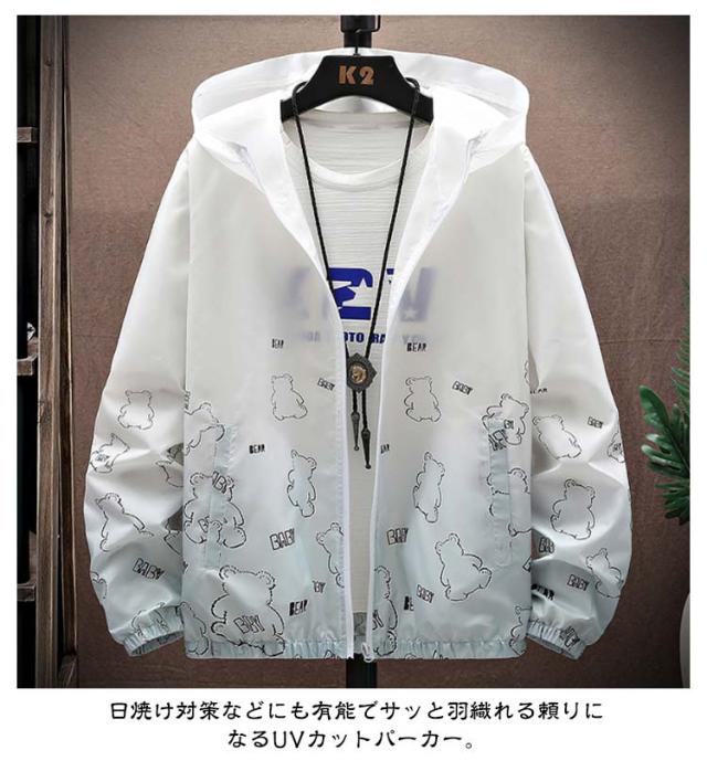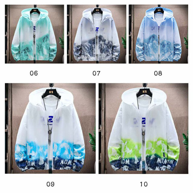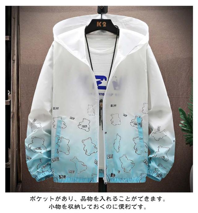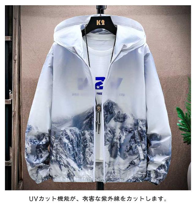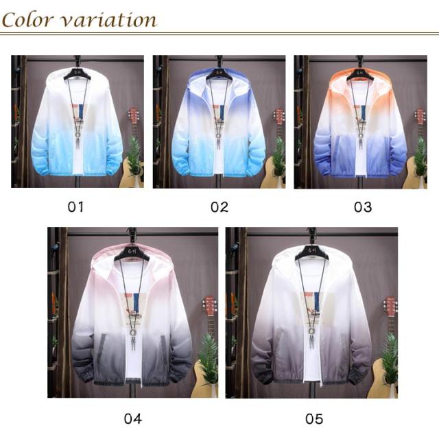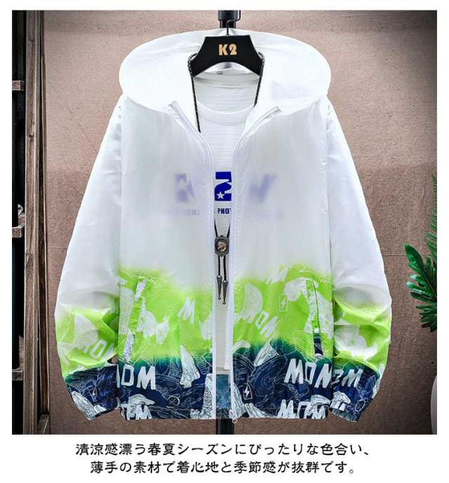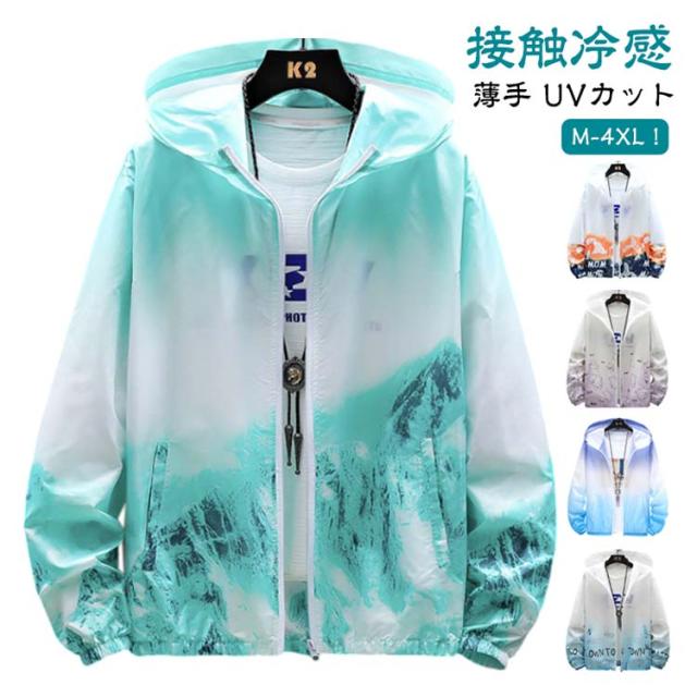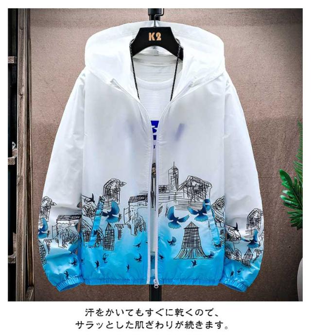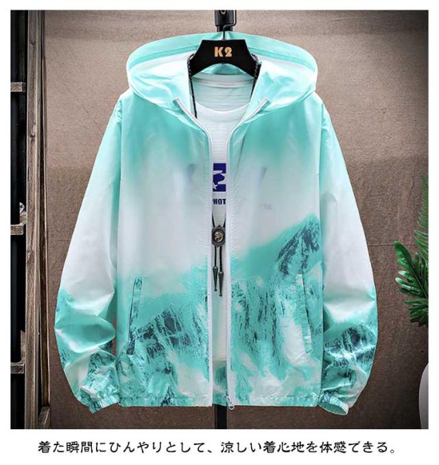 ラッシュガード メンズ 薄手 UVカット パーカー 紫外線対策 日焼け防止 ウィンドブレーカー ひんやり 夏用 ジャケット フード付き ジャンパー 接触冷感 軽量 冷房対策 無地 グラデーション アウトドア スポーツ 釣り 夏服 通気性 おしゃれ 大きいサイズ カジュアル 父の日