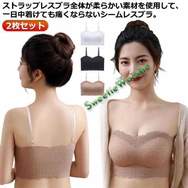 2枚セット チューブトップブラ ベアトップ 大きいサイズ レディース カップ付 下着 ブラジャー 肩紐なし ずれない ストラップレス ナイトブラ 肩見せ 紐なしブラ ノンワイヤーブラ 盛りブラ 谷間 育乳ブラ 小胸 ドレス用下着 ブラトップ 送料無料