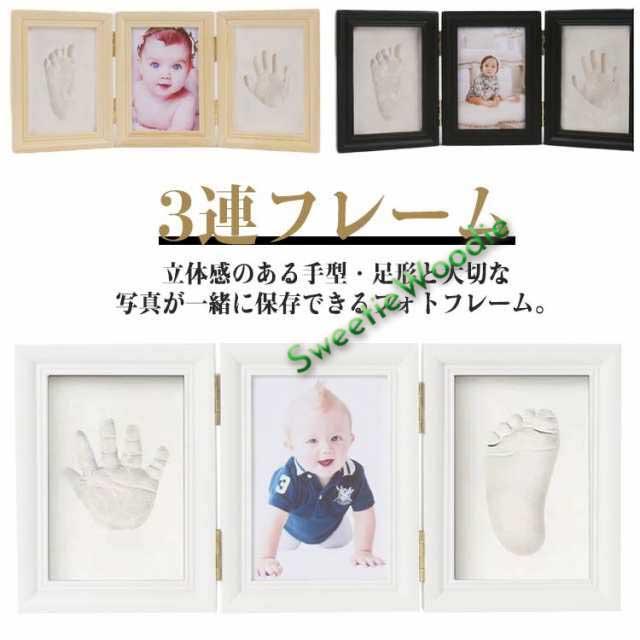 3連フレーム 出産祝い 写真立て 粘土 手形 足形 フォトスタンド メモリアル バースデー祝い お誕生日祝い 新生児 赤ちゃん ベビー 記念品 手形アート フォトフレーム スタンプ フォトスタンド キット 100日祝い 成長記録 ギフト