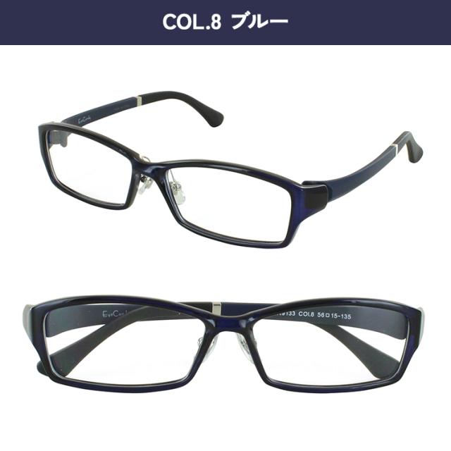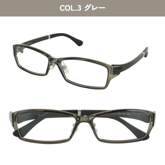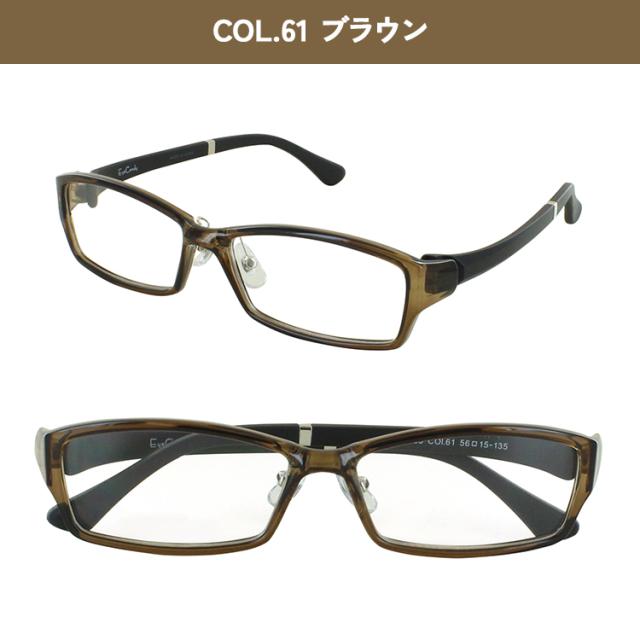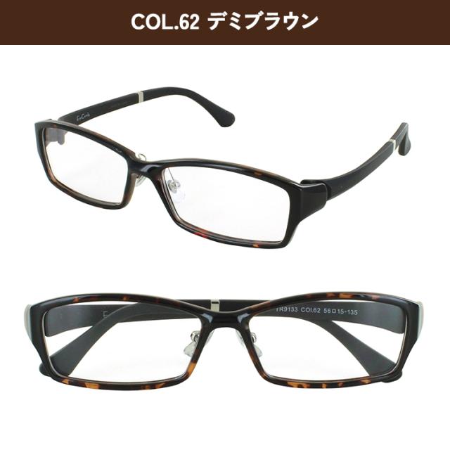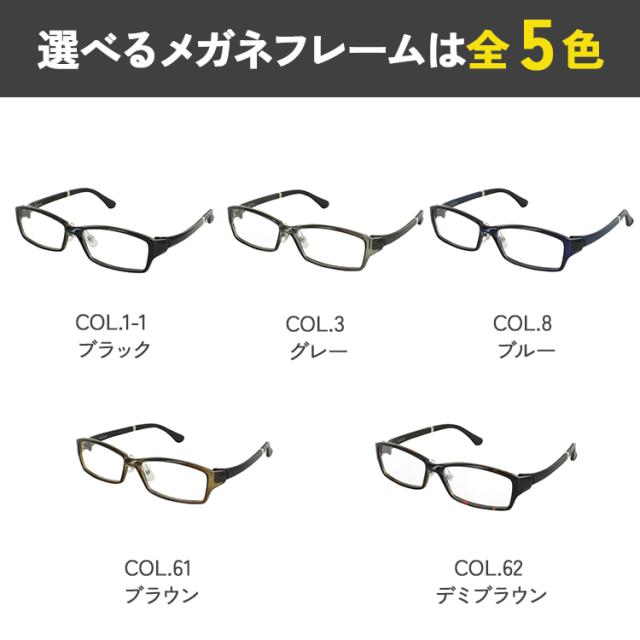 | <フレームカラー> COL.1-1 ブラック COL.3 グレー COL.8 ブルー COL.61 ブラウン COL.62 デミブラウン | <素材> フレーム材質:TR90 テンプル材質:TR90 |